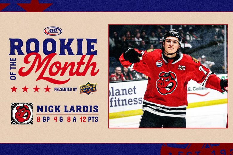 Rockford IceHogs forward Nick Lardis has been selected as the Upper Deck AHL Rookie of the Month for October.