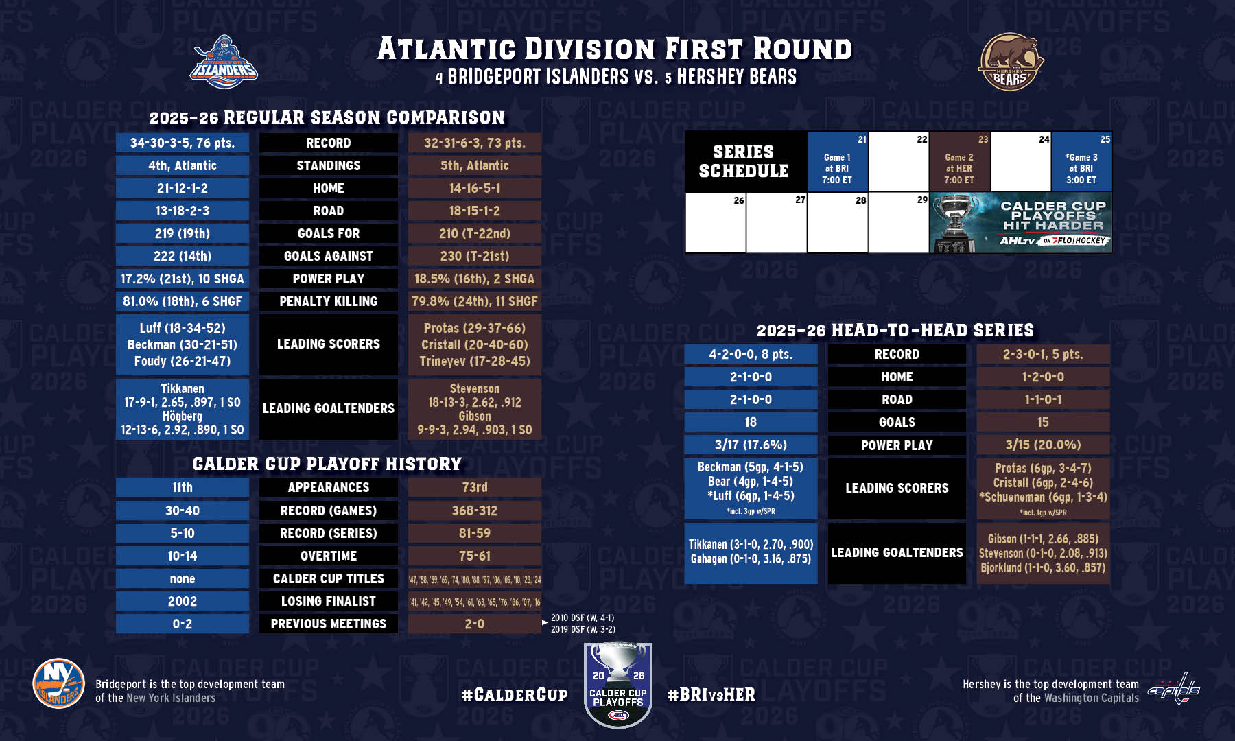 • The 2026 Calder Cup Playoffs get underway tonight with Game 1 between the Bridgeport Islanders and the Hershey Bears