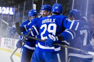 With 4:22 left in the second period, David Gustafsson – who scored the winning goal in the final minute of Game 2 – gathered a loose puck behind the Admirals net and centered a feed to Samuel Fagemo, who was just coming on from the bench. Fagemo wired a shot home from the left circle to put the Moose ahead 2-0.