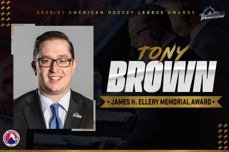 Tony Brown, the senior manager of broadcasting/team communications for the Cleveland Monsters, has been selected as the recipient of the James H. Ellery Memorial Award for the 2020-21 season.