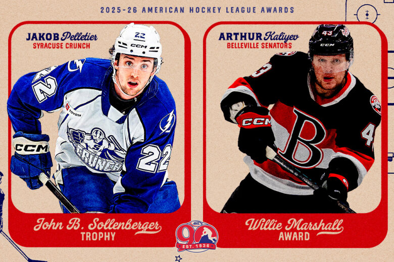 Syracuse Crunch forward Jakob Pelletier and Belleville Senators forward Arthur Kaliyev have claimed the American Hockey League’s two prestigious offensive awards for the 2025-26 season.