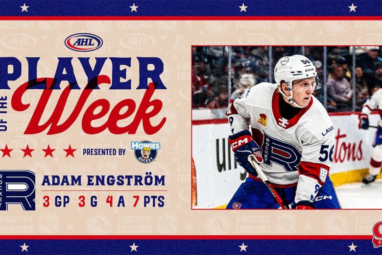 Laval Rocket defenseman Adam Engström has been selected as the Howies Hockey Tape/AHL Player of the Week for the period ending November 23, 2025.